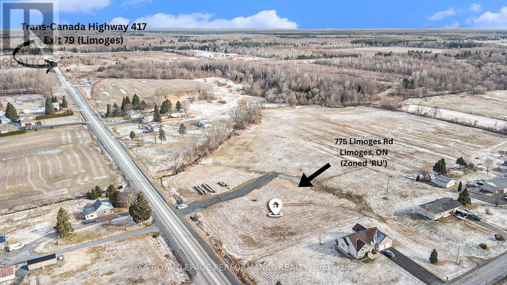 Presenting 0.923 acres of prime Rural (RU) land, perfectly situated in the growing town of Limoges! In a location that simply can't be beat, this parcel of land is situated at the steps of the Trans-Canada Highway 417, in a prime location. Zoned RU (rural), perfect for those looking to build their dream home, along with a long list of additional permitted uses (buyer to verify permitted uses with the township). Fantastic opportunity to build your dream home, or a multi-generational home with your loved ones. The town of Limoges is part of the extremely progressive township of The Nation. With a rapidly rising population & many new significant residential developments already under way, this parcel of land offers a fantastic opportunity for serious investors & developers. Situated a 20-25 minute drive from Ottawa, +/- 1h30 from Montreal, and +/- 5h from Toronto. Minimum of 24h irrevocable on all offers. The access to this property is through a private road that is shared with 3 properties (771, 775 & rear neighbors). (id:6289)