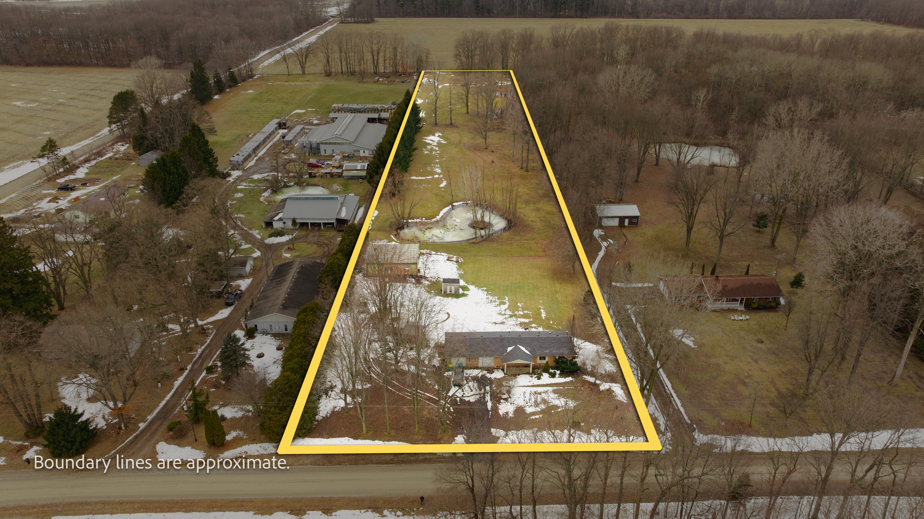 Experience peaceful country living on this picturesque 5 acre hobby farm. This updated 3 bedroom, 2 bath ranch offers modern comforts, abundant outdoor space, and versatile A3 zoning perfect for hobby farming, workshop use, or simply enjoying the tranquility of rural life. Step inside to a newer, updated kitchen featuring stainless steel appliances, porcelain tile flooring, quartz countertops, and exceptional cupboard space. The spacious living room is filled with natural light from the bay window, while all bedrooms feature warm, polished hardwood flooring. The partly finished basement adds even more usable space, complete with a rec room, laundry area, and generous storage. Outdoors, the property truly shines. A double-wide driveway offers parking for 6 vehicles and leads to the double car garage and welcoming covered front porch. Enjoy your morning coffee or evening sunsets on the deck in the back yard overlooking the serene pond, surrounded by mature trees. A separate fenced section is ideal for livestock, perfect for sheep, chickens, or other small animals. For hobbyists or business owners, the impressive 45' x 45' shop with hydro, water, and a durable steel roof provides endless possibilities. And with municipal water, you enjoy country living without the upkeep of a well. Major updates in recent years include a furnace (2021), owned hot water tank, roof improvements, and more. Conveniently located just minutes from nearby towns, 15 minutes to Hwy 401, and an easy 35 minute drive to London or Chatham, this property offers the perfect blend of rural charm and modern accessibility.